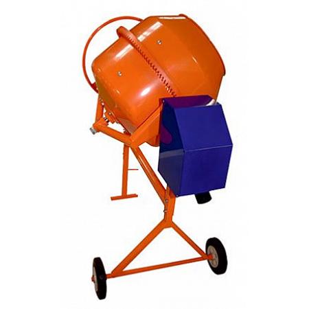 Данная модель производит 85 литров готового раствора за 100 секунд. Ручной привод опрокидывания с фиксатором обеспечивает удобство контроля выхода раствора. Болтовое соединение обеспечивает надежное крепле. Работает от однофазной сети переменного тока напряжением 220 В, частотой 50 Гц. Ведущая шестеренка, расположенная на валу двигателя и венец выполнены из чугуна, что обеспечивает долгий срок службы бетоносмесителя. Усиленная конструкция - железный корпус двигателя.