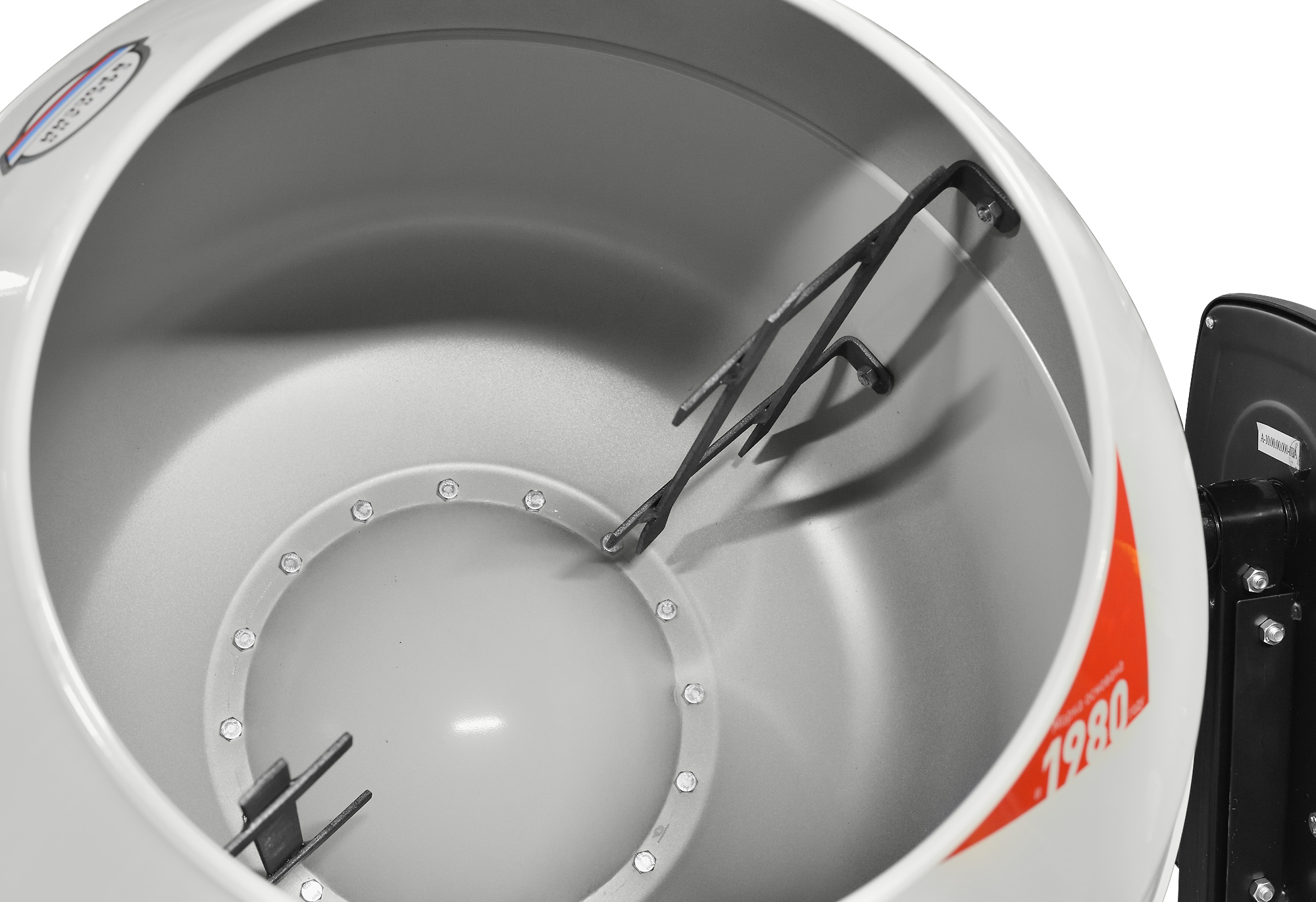 Ножной механизм фиксации положения барабана, который позволяет удерживать маховик для выгрузки смеси двумя руками.