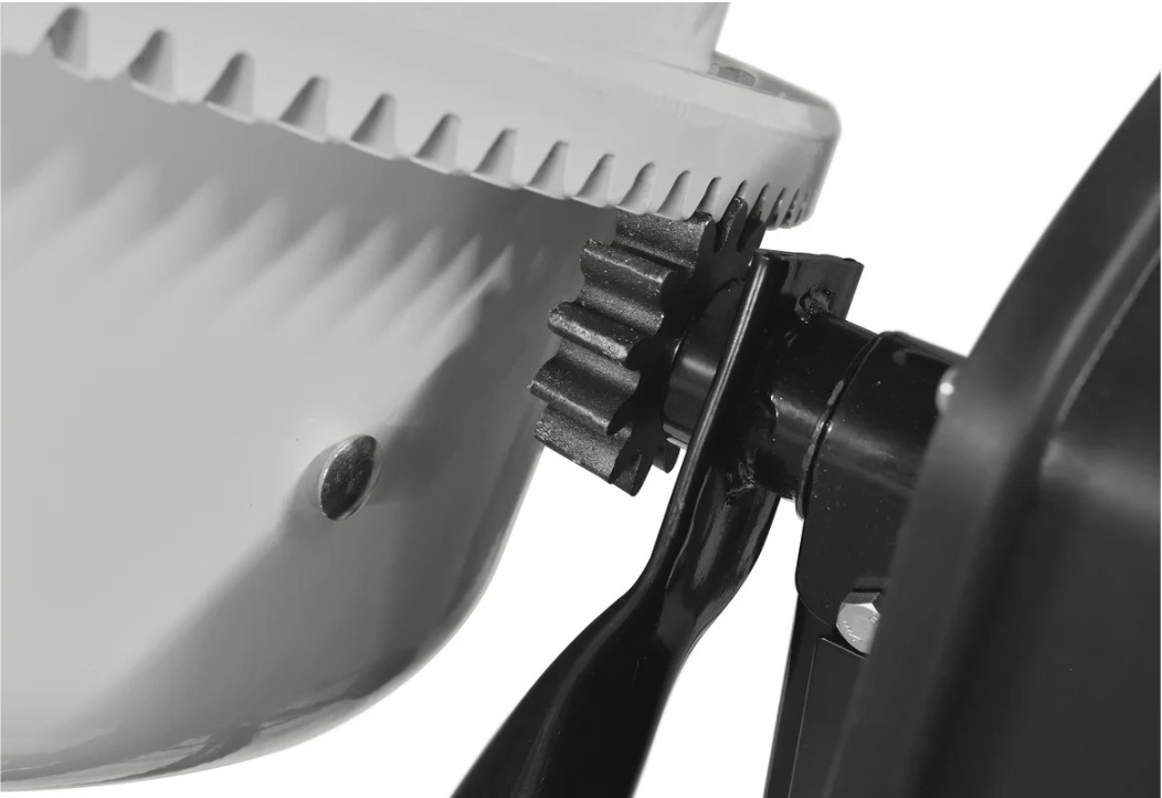 Ножной механизм фиксации положения барабана, который позволяет удерживать маховик для выгрузки смеси двумя руками.