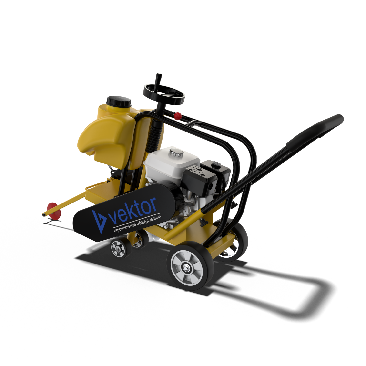 Работает от бензинового двигателя (LIFAN 168F-2 ). Может резать без использования охлаждения. Шины швонарезчика выполнены из мягкого каучука, что обеспечивает плавность хода.