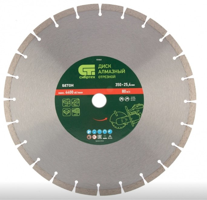 Диск алмазный ф350 х 25,4 мм, "Асфальт", сухой/мокрый рез// Сибртех -СКИДКА 20% в Красноярске