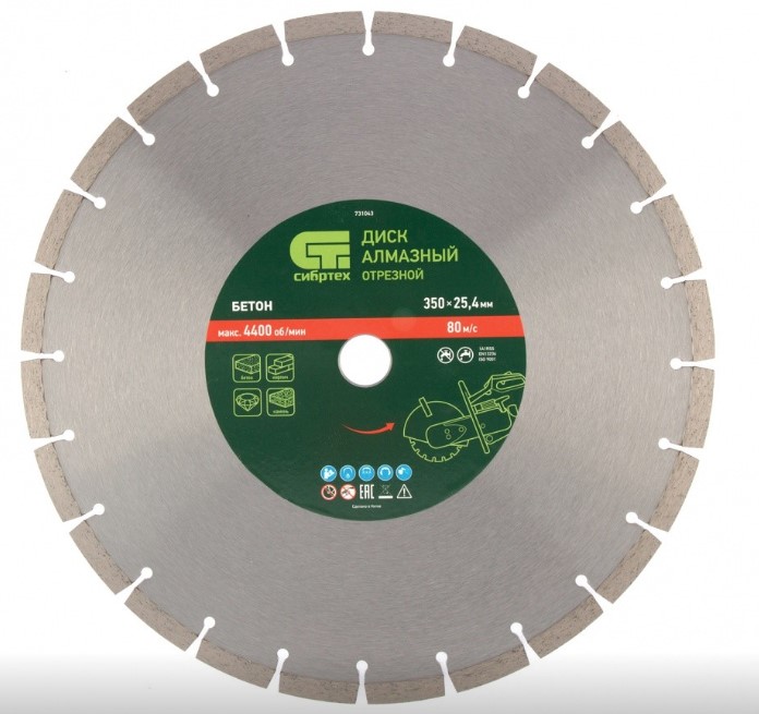 Диск алмазный ф350 х 25,4 мм, "Бетон",сухой/мокрый рез Сибртех в Красноярске