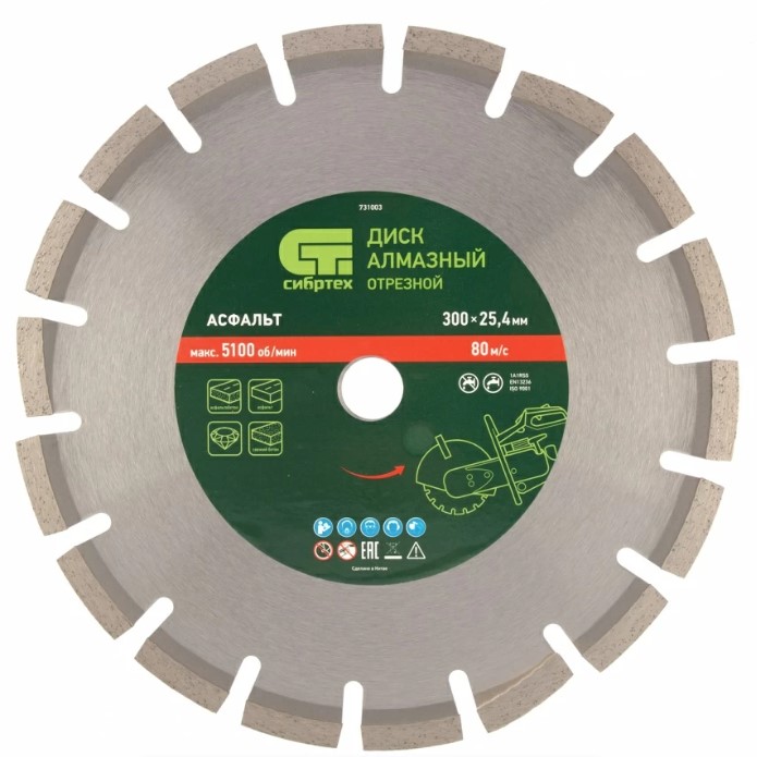 Диск алмазный ф300 х 25,4 мм, Асфальт, сухой/мокрый рез Сибртех в Красноярске