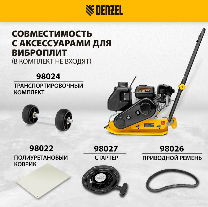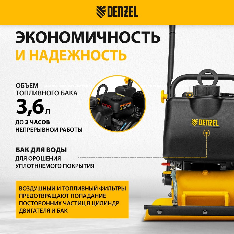 Виброплита бензиновая DENZEL VC-30W, 30 кН, 60*45 см, 196 см3, бак для воды в Красноярске