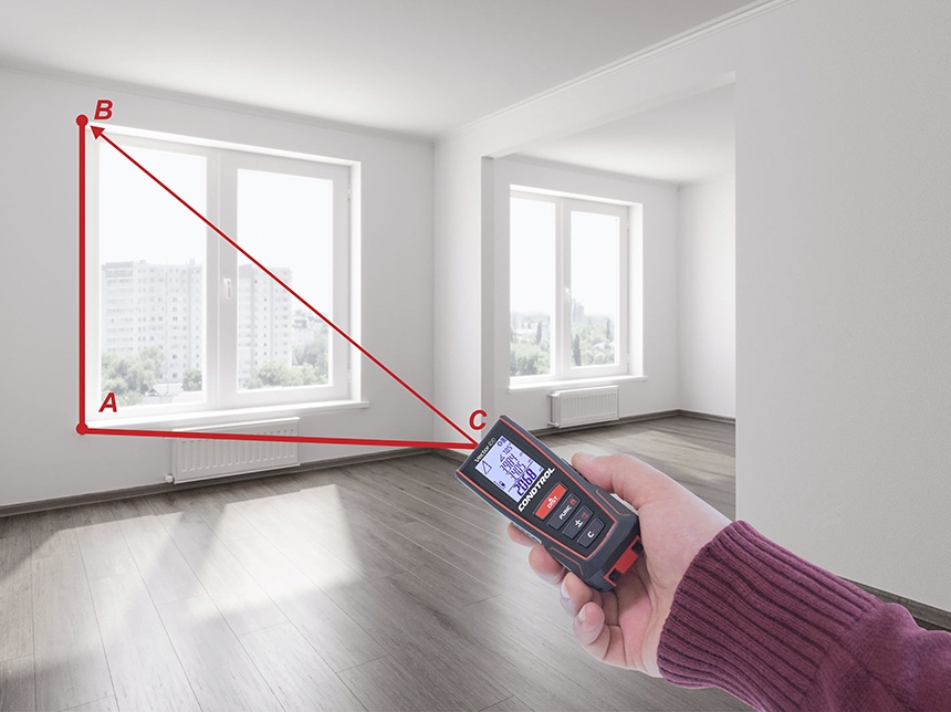 • Выполняет автоматические вычисления площади, объёма, сложение и вычитание, для проведения замеров в труднодоступных местах имеет функцию косвенных вычислений по теореме Пифагора, функция трекинга, функция маляра