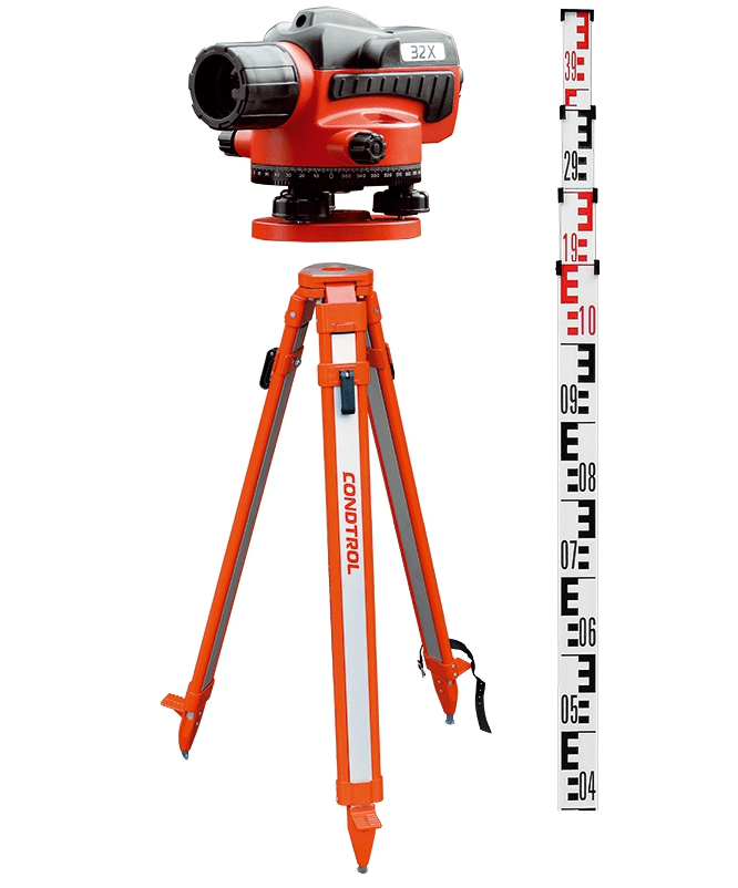 CONDTROL 32X оптический нивелир снабжён компенсатором с магнитной системой демпфирования, работающем в диапазоне ±15'. Это позволяет быстро и корректно производить измерения с высокой точностью. Среднеквадратичная ошибка на 1 км двойного хода составляет 1,5 мм. Прибор обладает 32-кратным увеличением зрительной трубы с просветленной оптикой, что значительно улучшает видимость и облегчает наведение на удаленные объекты. Нивелир имеет горизонтальный лимб с ценой деления 1 градус и винтом бесконечного наведения, а для удобства поиска цели сверху на зрительной трубе расположен оптический визир-целеуказатель.