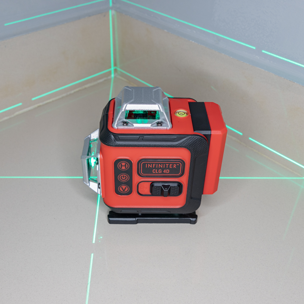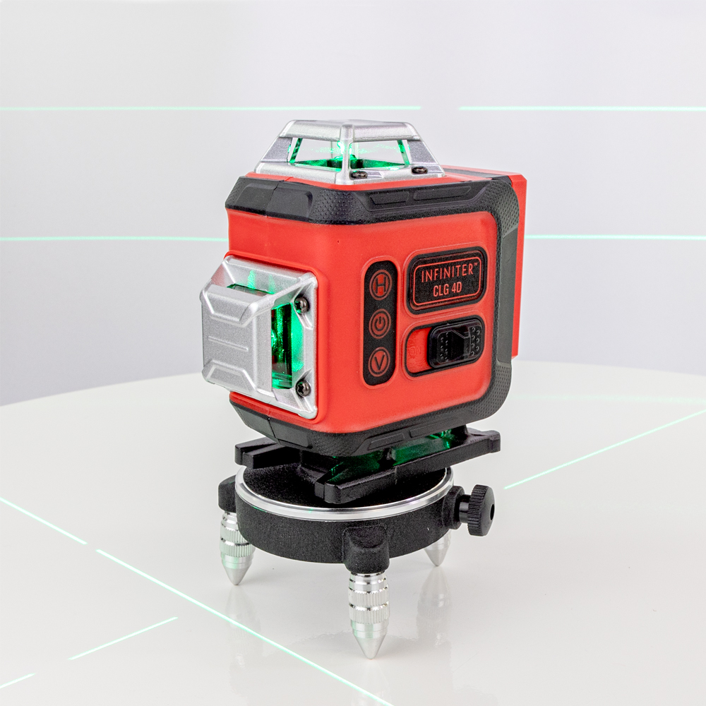 Лазерный нивелир INFINITER CLG 4D проецирует две вертикальные и две горизонтальные плоскости с углом развертки 360°. Нивелир обеспечивает компенсацию наклона корпуса прибора до ±3°.