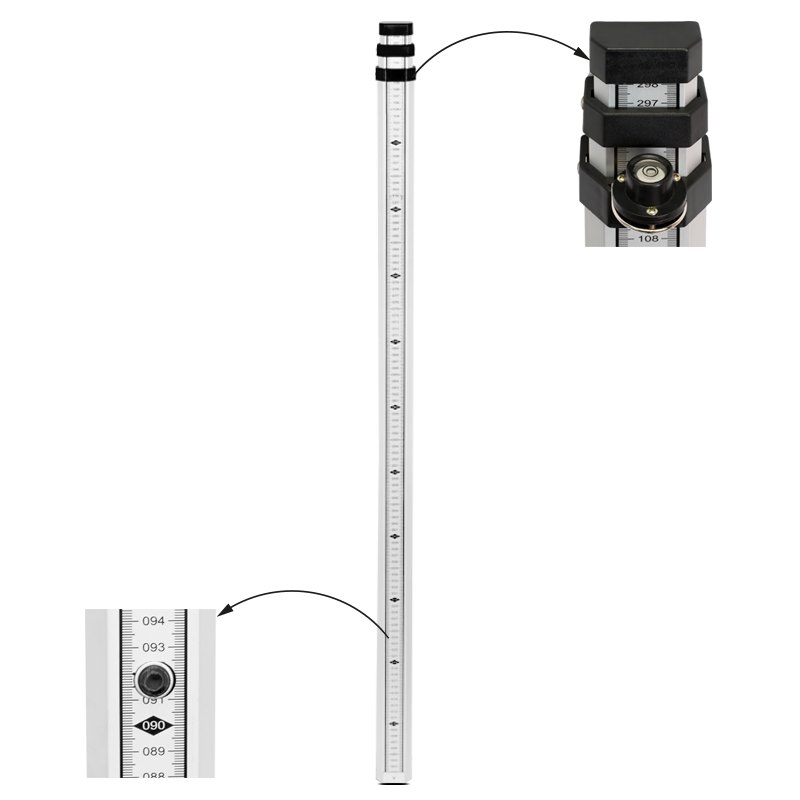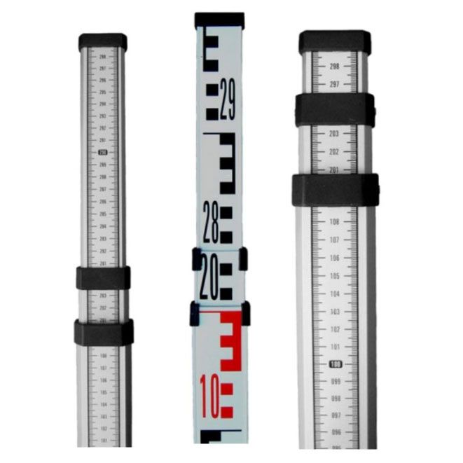 Сочетание Е-градуировки на одной стороне и миллиметровой шкалы на другой стороне расширяет возможности использования реек, а небольшой размер и вес телескопической рейки делают ее удобной и мобильной.