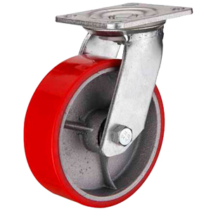 Колесо большегрузное полиуретановое поворотное (SCp55) 125 мм предназначено для перемещения грузов во время строительных, торговых и промышленных работ. Колеса полиуретановые нашли свое применение во всех сферах производства и сервиса. Так как полиуретановые колеса входят в серию большегрузных колес, их устанавливают на мусорные контейнеры, платформенные тачки, на складское и коммунальное оборудование. Температура эксплуатации данных колесных опор от -35 до +50 градусов по шкале Цельсия. Чугунный обод и смазочный ниппель увеличат срок службы колеса вдвое. Данные колесные опоры оснащены осевым роликовым подшипником. Для использования полиуретановых колес с платформенными тележками предусмотрена площадка с креплением под четыре болта. Для улучшения качества хода большегрузного колеса, ширина контактной резиновой поверхности была увеличена до 50 мм.