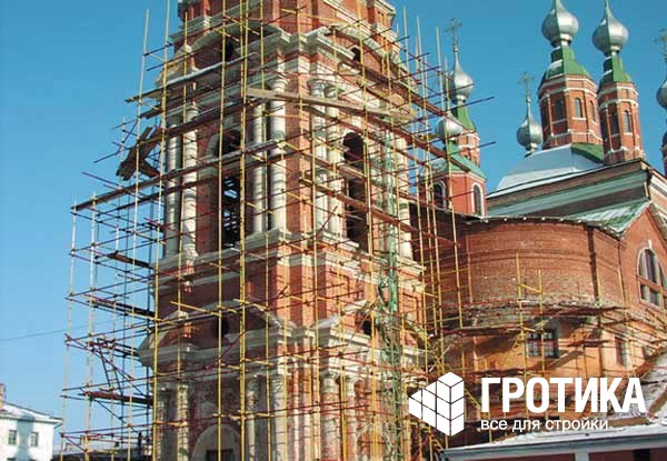 Универсальность хомутовых лесов позволяет проводить работы на объектах с фасадами любой сложности (колонны, балконы, купола, арки, карнизы).