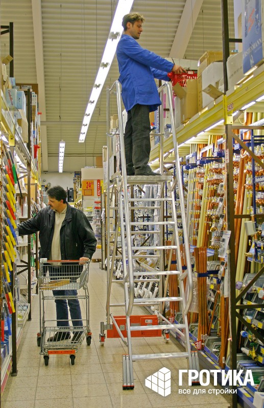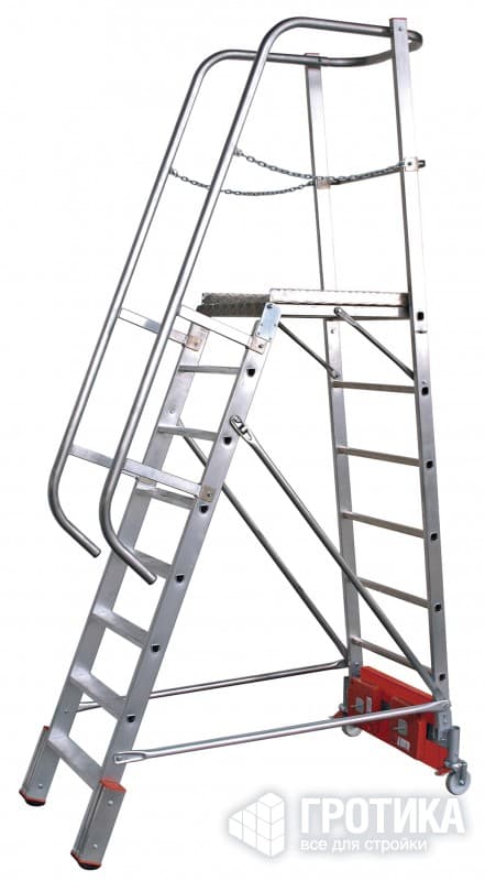 - Односторонняя складная алюминиевая лестница с платформой, оснащенная инновативной системой стабилизации