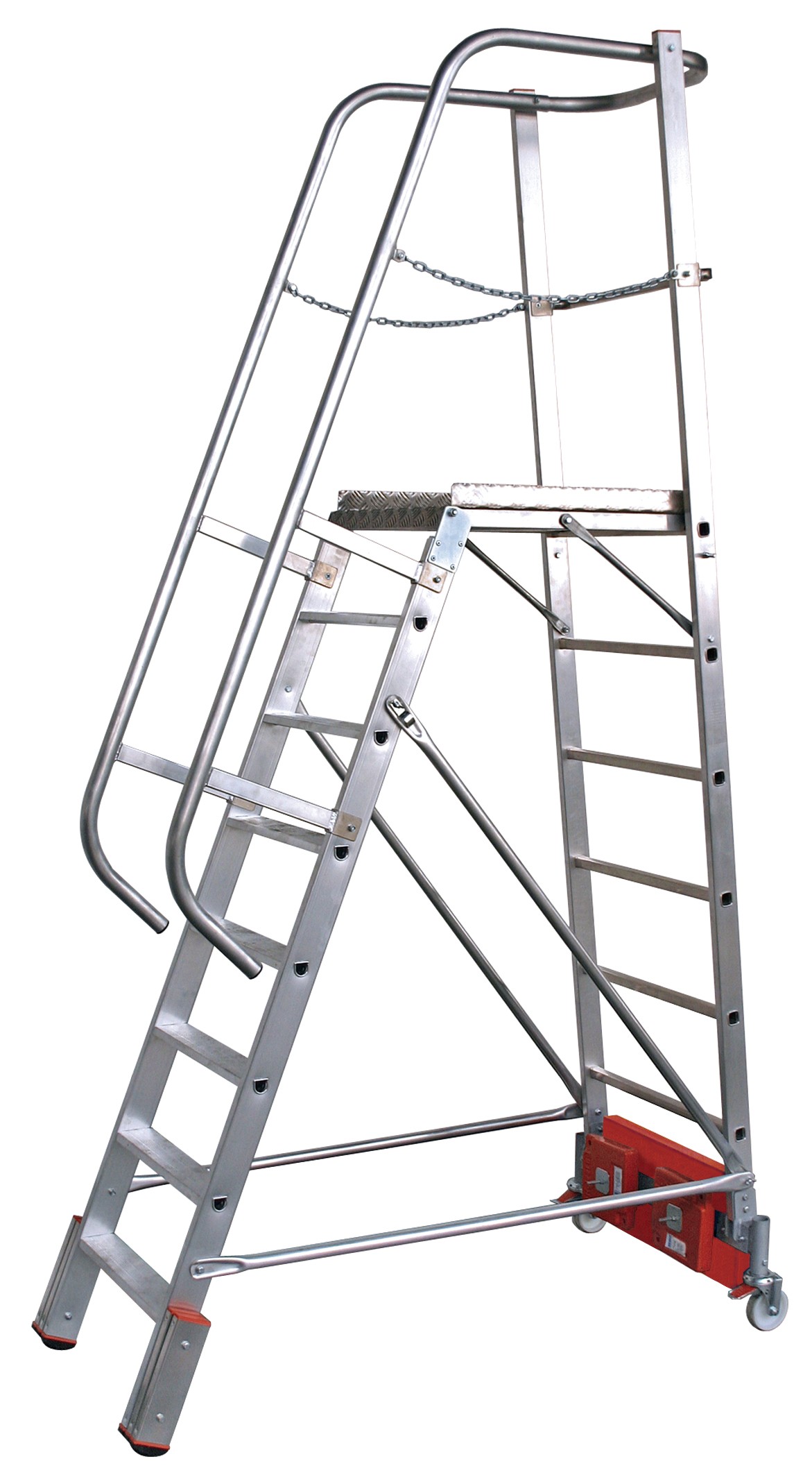 - Односторонняя складная алюминиевая лестница с платформой, оснащенная инновативной системой стабилизации