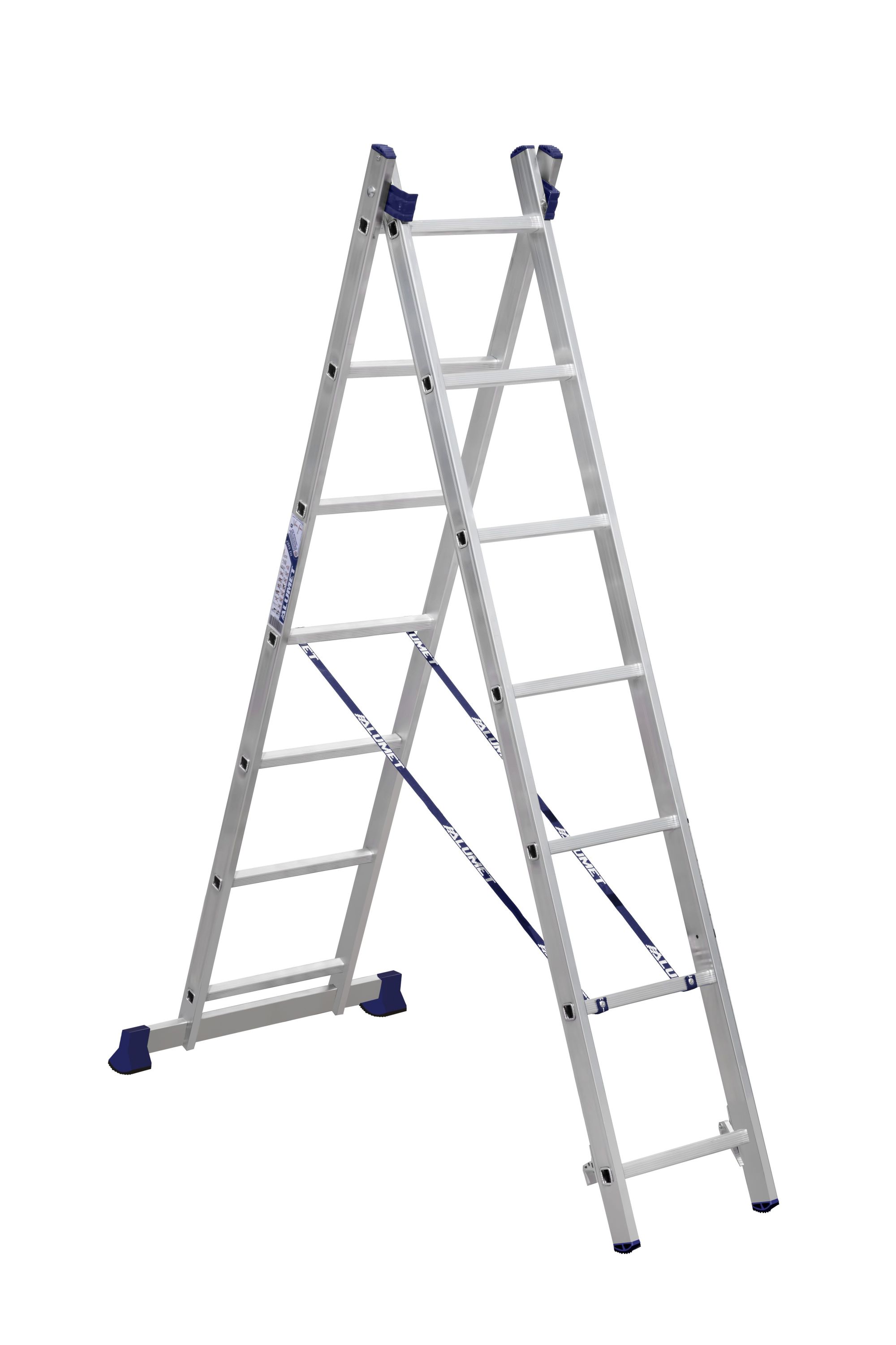 Может использоваться в виде приставной лестницы, двухсторонней стремянки.