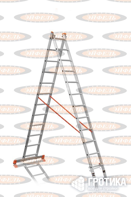 Каждая двухсекционная лестница оснащена специальными замками и специальными ремнями, которые соединяют между собой секции. Ремни выполняют страховочную функцию, а замки предназначены для того, чтобы конструкция могла свободно использоваться в качестве приставной или в виде лестницы-стремянки двухсекционной. В последнем случае конструкция будет обеспечивать свободное восхождение с двух сторон.