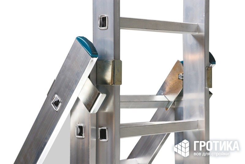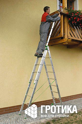Может использоваться как приставная лестница высотой 4.2м, двухсторонняя стремянка высотой 2 м и стремянки с выдвижной секцией высотой 3.07м. При этом в сложенном состоянии лестница длиной всего 1.96 м.