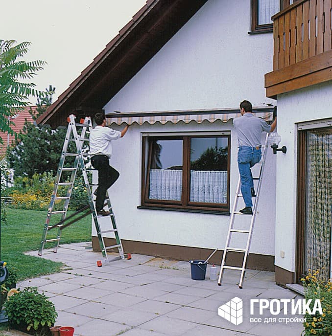 - Устойчивые к атмосферным воздействиям ремни препятствуют нежелательному раздвижению лестниц в рабочем положении