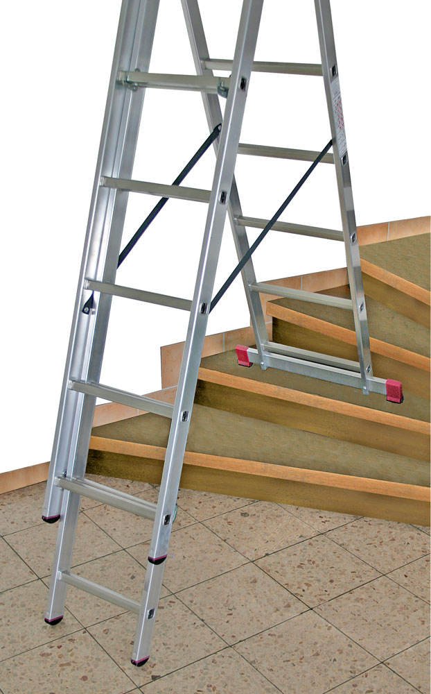 Алюминиевая трехсекционная лестница 3 х 7 ступеней Corda - 3 секции по 7 ступеней в каждой. Максимальная высота лестницы 4,2 м. Изготовлена из высококачественного алюминия стойкого к коррозиям и износу.