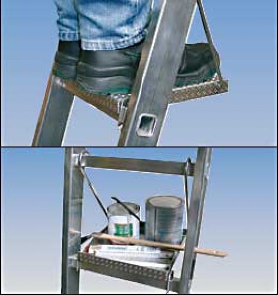 Наряду с этим, смонтированное на лестнице с перекладинами изделие может использоваться также в качестве универсального лотка для инвенторя.