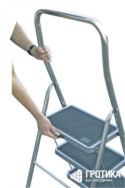 - Большие, обрезиненные ступени обеспечивают удобную и надежную опору