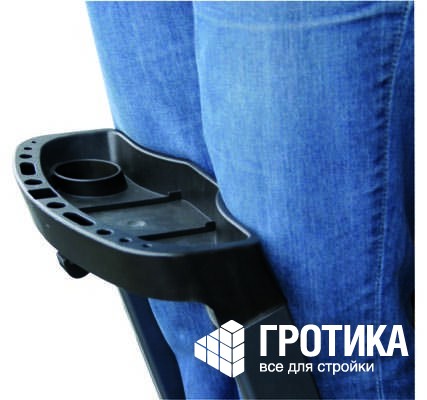 - Большая эргономично выполненная полка для инструментов с двумя крюками для ведер