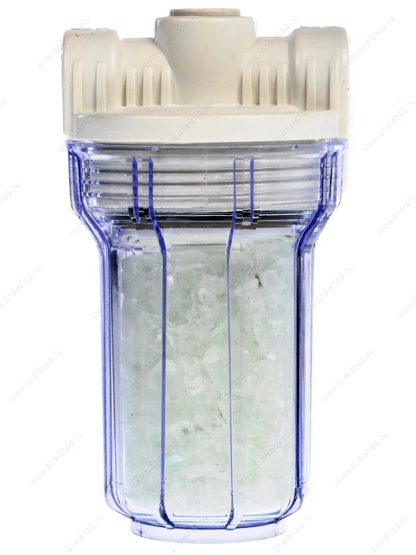 Прозрачный корпус фильтра позволяет контролировать работоспособность системы. При растворении полифосфата более чем на половину необходимо заменить наполнитель.