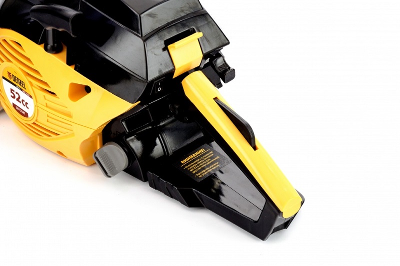 Безопасная работа - аварийный тормоз автоматически останавливает цепь при отскоке, защищая оператора.