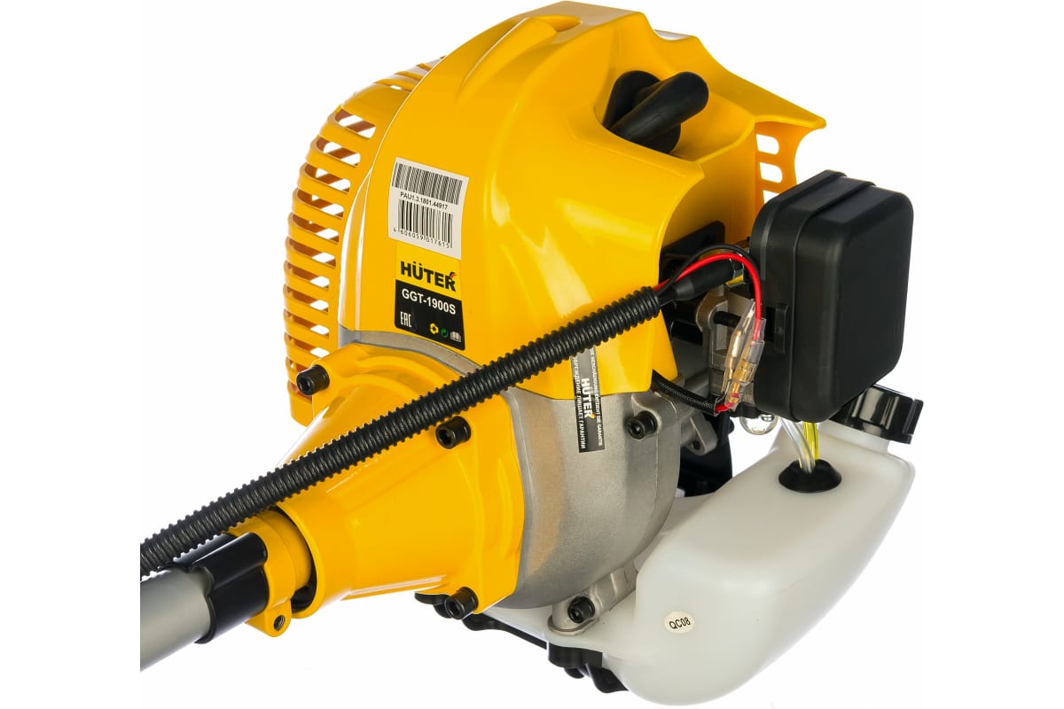 Бензиновый триммер Huter GGT-1900Sподойдет для скашивания высокой травы и древесной поросли на загородной территории или даче. Модель GGT-1900S оснащена складной штангой, благодаря чему инструмент помещается в багажник автомобиля. Механизм устройства стандартный: бензиновый двухтактный двигатель мощностью 1900 Вт, охлаждаемый воздухом, который приводит в движение головку с леской или нож. В комплекте идут стандартная головка с леской и трехлопастной нож.