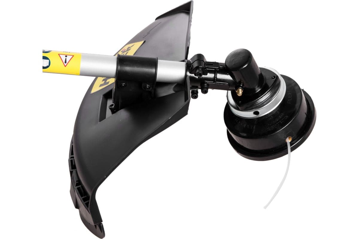 Работает система от двухтактного двигателя мощностью 2500 Вт с воздушным охлаждением. Хромированная поршневая группа мотора делает конструкцию более надежной и долговечной. Разборная штанга обеспечивает комфортную транспортировку бензотриммера. А система быстрого запуска позволяет легко заводить устройство даже неопытному пользователю.