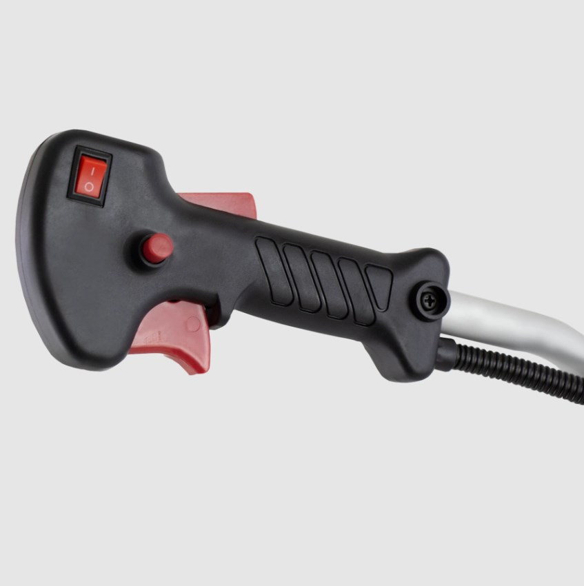 - Эргономичность — велосипедная рукоятка имеет асимметричную форму, поэтому триммер удобно удерживать и направлять.