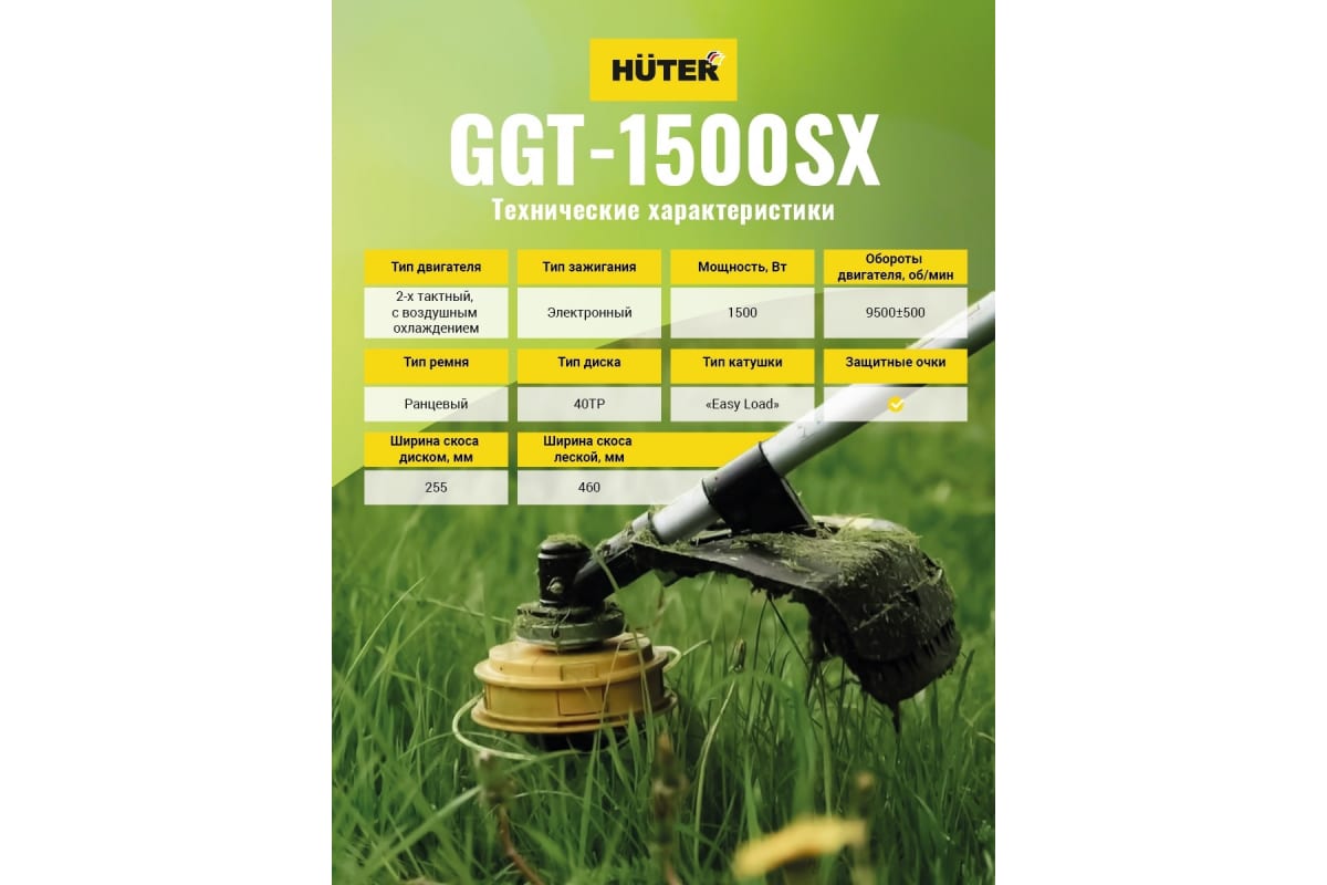Бензиновый триммер HUTER GGT-1500SX является компромиссным вариантом для тех, кто хочет получить функциональный инструмент с хорошей комплектацией, не тратя при этом излишних средств за большую мощность. Он укомплектован насадкой-катушкой с безразборной конструкцией заправки лески – «Easy Load», надёжным хромированным зубчатым диском с победитовыми напайками – 40 ТР и, в отличие от модели бензотриммераGGT-1500TX, разъёмной штангой для удобного транспортирования, профилактики и хранения.