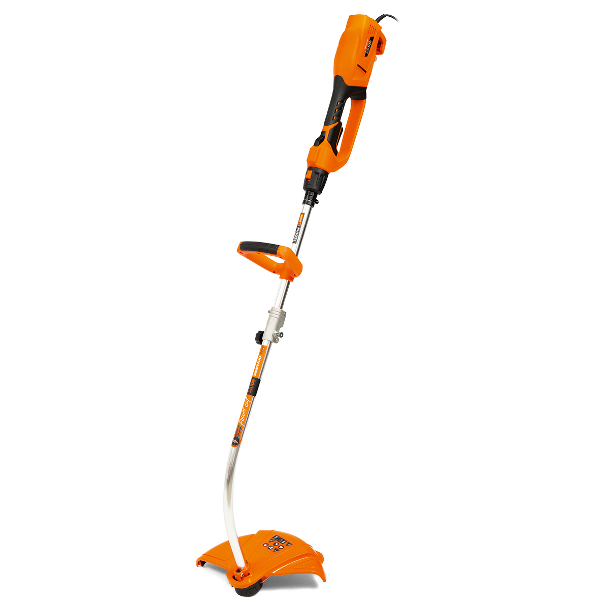 Электрическая коса имеет верхнее расположение двигателя, поэтому можно скашивать даже влажную траву. Для защиты оператора от травм и режущего инструмента от поломки предусмотрен защитный кожух. Разъемная штанга значительно упрощает транспортировку и хранение инструмента. Данный инструмент не выделяет вредных выхлопов и при работе отличается малошумностью. Крепление шпульки М10*1,25 левая резьба. Габариты (Д*Ш*В) 945х260х130 мм.