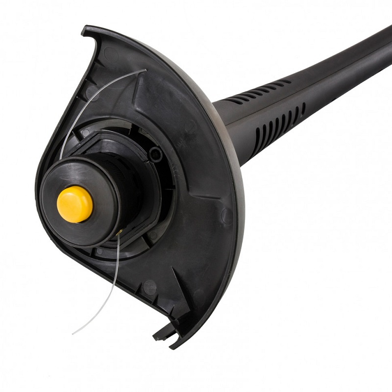 Триммер оснащен полуавтоматической катушкой, для удлинения лески достаточно слегка ударить катушкой о землю.