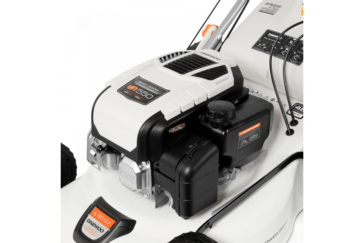 4-х тактный бензиновый двигатель DAEWOO series VR 550, объемом 150 см3 специально разработан для садовой техники. Он отличается надежностью и увеличенным моторным ресурсом, более низким уровнем шума и вибрации.