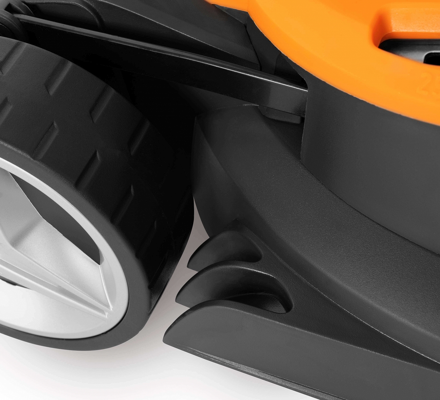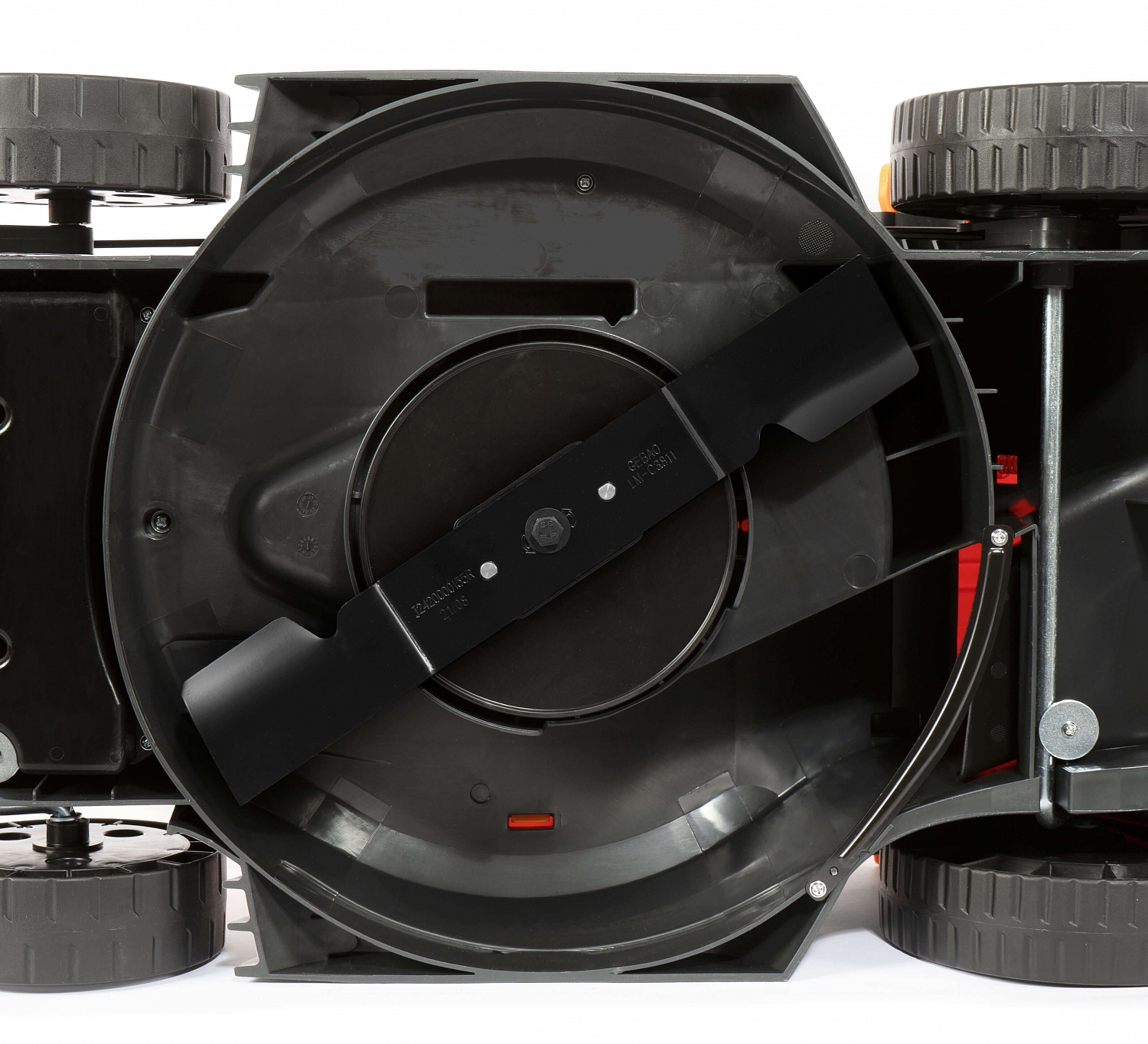 - Предусмотрены две ручки для удобного перемещения и разгрузки газонокосилки