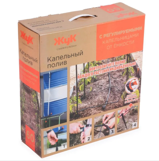 Капельный полив Жук от ёмкости на 60 растений с регурируемыми капельницами в Красноярске