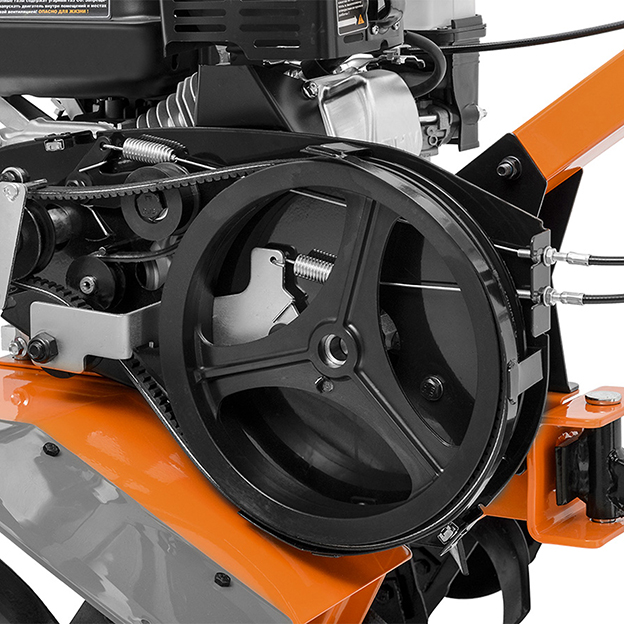 • Цепная трансмиссия передает до 95% крутящего момента двигателя и позволяет легко закапываться на максимальную глубину.