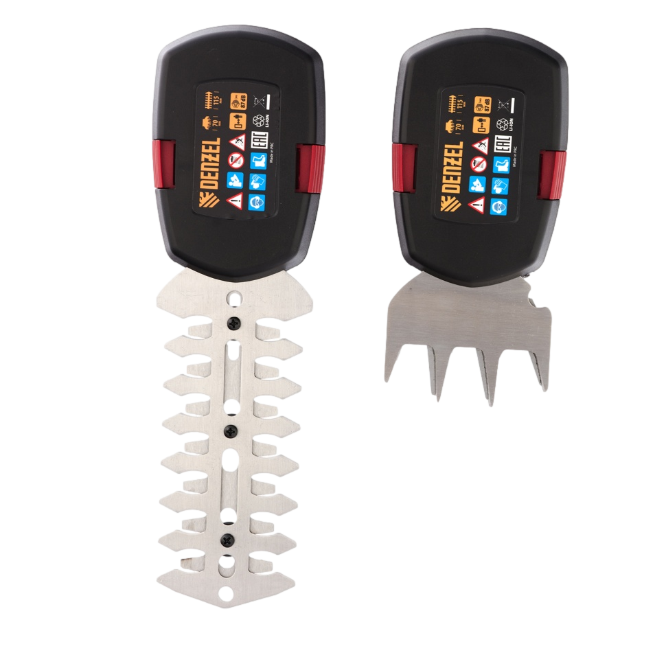 В комплекте идут два типа оснастки: для скашивания газона и подравнивания кустарника. Благодаря простому управлению и малому весу 0,6 кг с ножницами-кусторезами легко справятся даже пожилые люди.