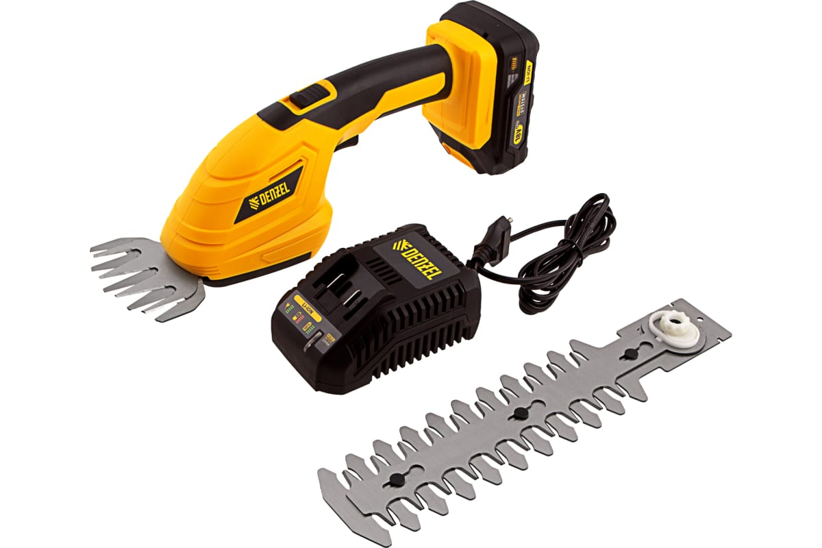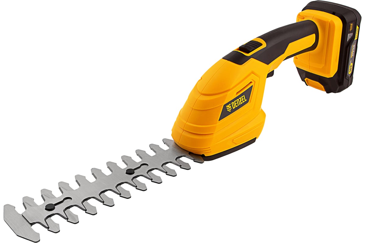 Аккумуляторные ножницы-кусторез Denzel CGS-100 59430 с батареей 18В Li-Ion предназначены для срезания травы, стрижки кустарников, листвы и тонких побегов деревьев диаметром до 8 мм. Инструмент оптимален для создания живой изгороди на дачном участке, создания ландшафтных скульптур из декоративных растений, подравнивания растительности вдоль заборов и бордюров.;Ножницы-кусторез не зависят от сети электропитания, а значит, использовать их можно в отдаленных участках сада. Аккумулятор Denzel 18В Li-Ion с интеллектуальной системой распознавания нагрузки обеспечивает стабильную работу инструмента со скоростью 1200 ход/мин и эффективное выполнение поставленных задач.