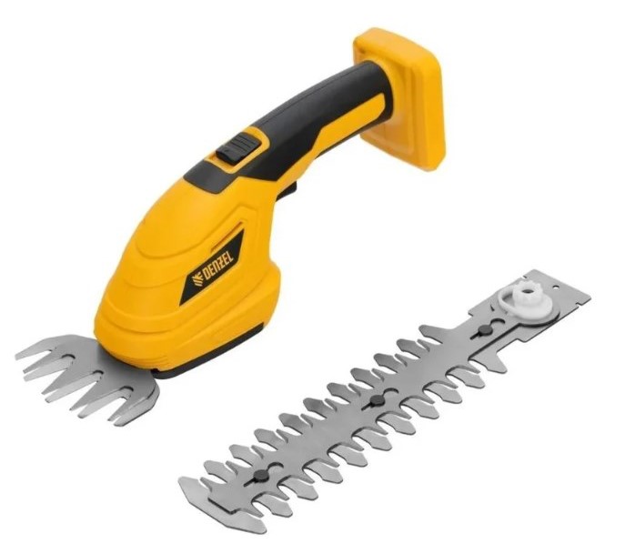 Аккумуляторные ножницы-кусторез Denzel CGS-100-0 59431 работают от батареи 18 В Li-Ion (не входит в комплект поставки) и предназначены для срезания травы, обрезки кустарников, листвы и тонких побегов деревьев диаметром до 8 мм. Инструмент оптимален для создания живой изгороди на дачном участке, создания ландшафтных скульптур из декоративных растений, подравнивания растительности вдоль заборов и бордюров.