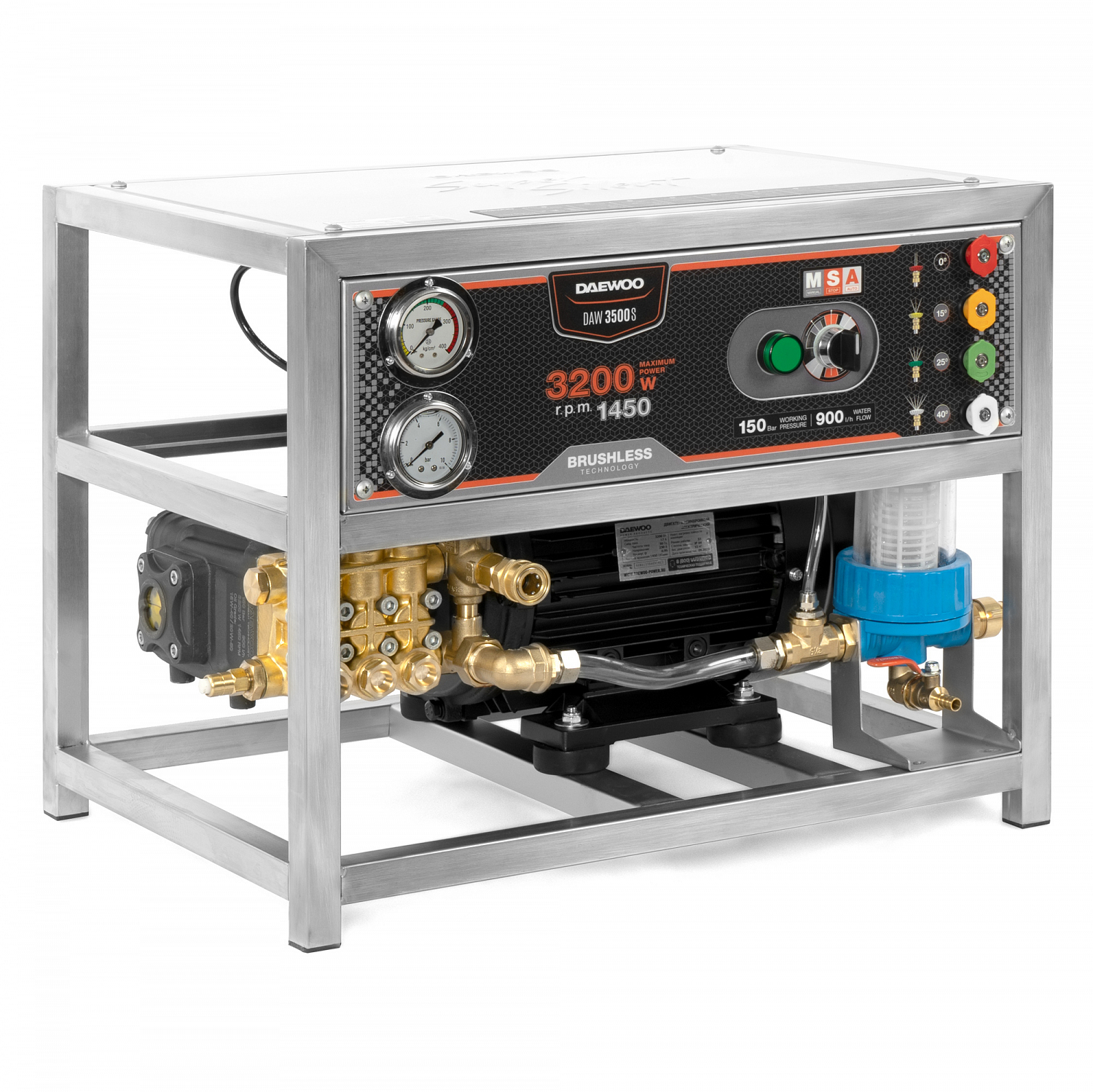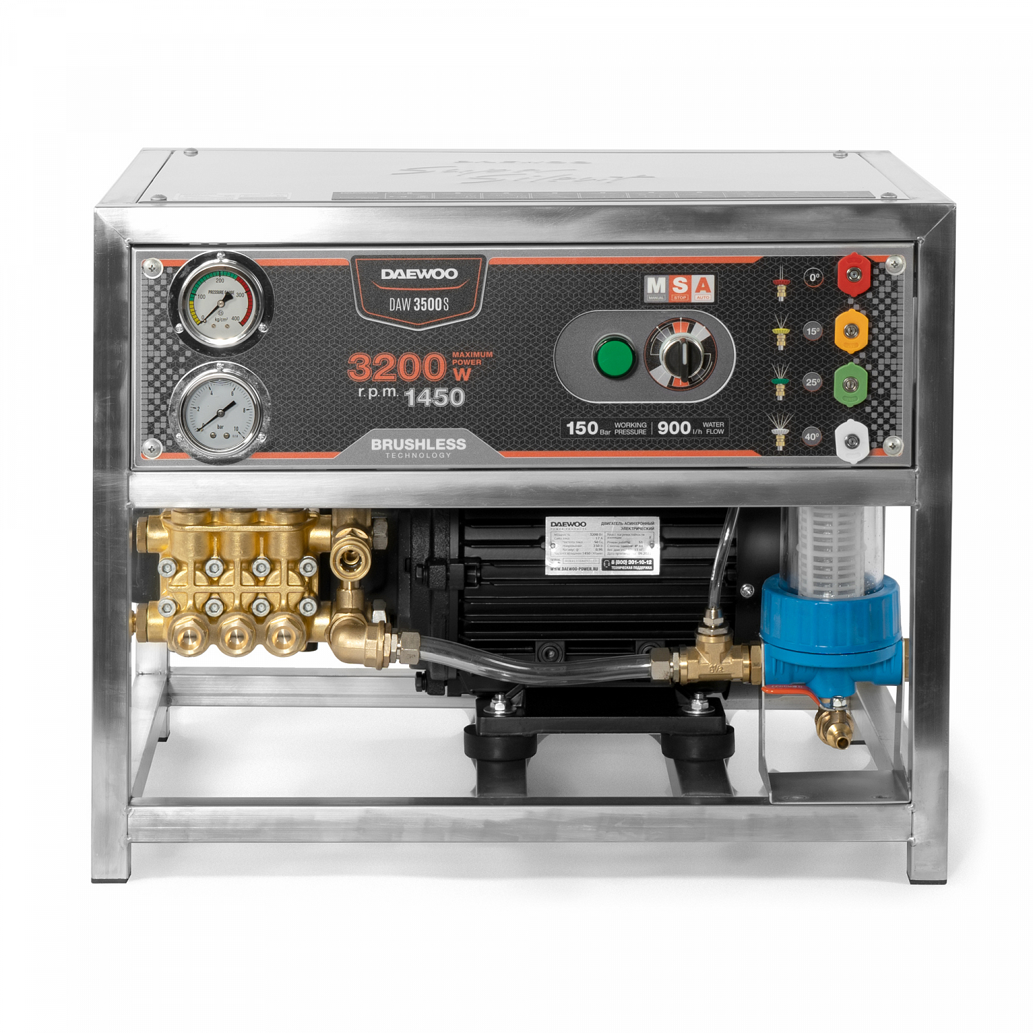 Бесщеточный двигатель с рабочими оборотами 1450 об/мин в паре с профессиональной помпой обеспечивают тихую работу и полное отсутствие шума при работе мойки.