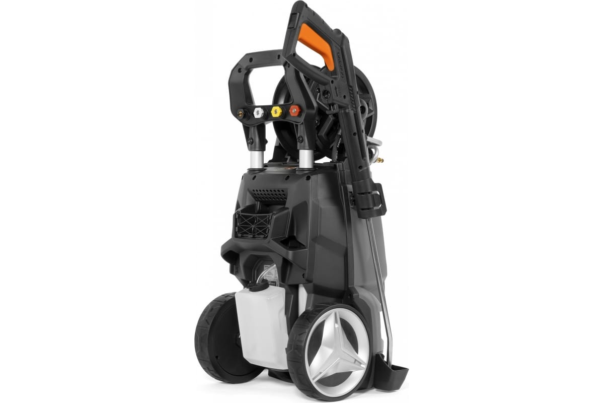Производительная алюминиевая помпа, выдаёт рабочее давление в 190 бар. Поток 590 литров в час, позволяет справляться с трудными загрязнениями.