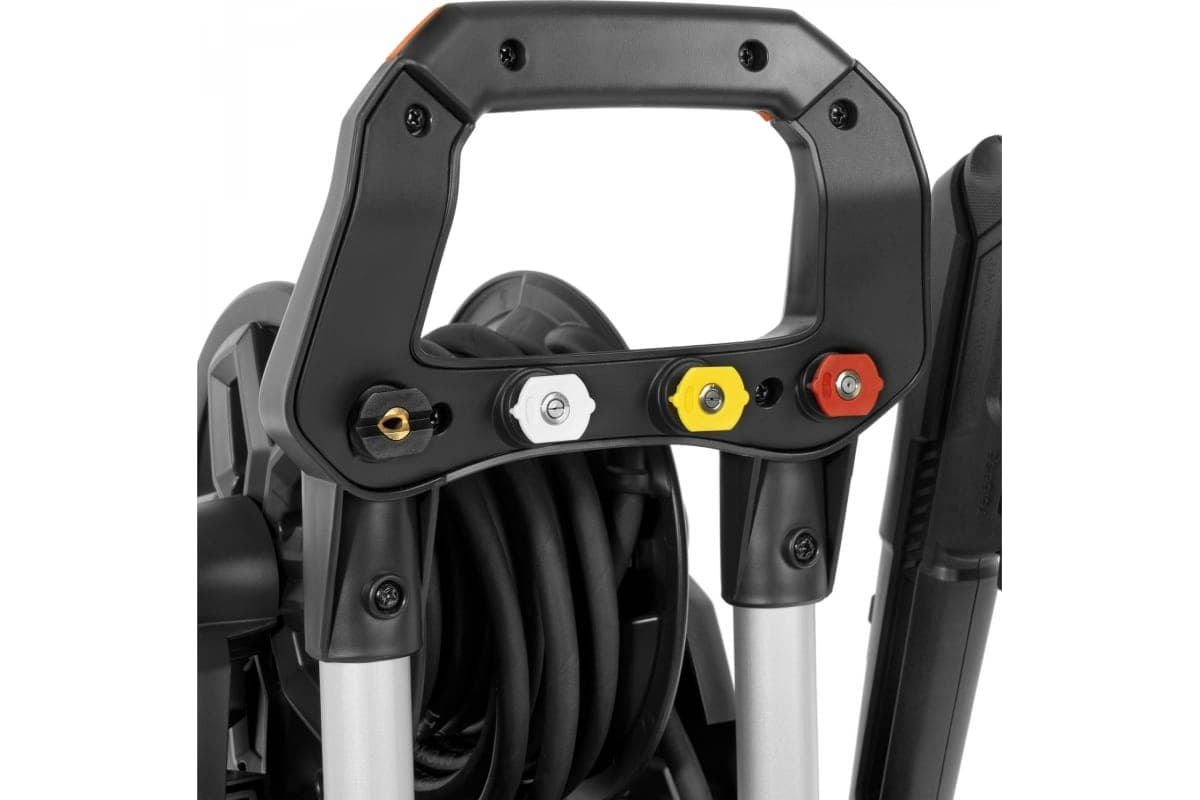 Барабан для шланга позволяет аккуратно хранить 8 метров шланга. Облегчает размотку шланга, до необходимой длины.