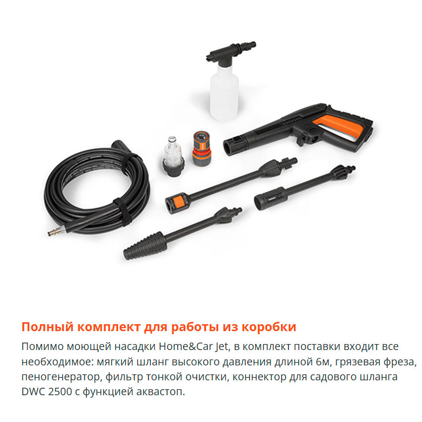 Моющая насадка DAEWOO Home&Car Jet с мойкой поставляется уникальная веерная насадка Car&Home Jet с латунным соплом, обладающая повышенной моющей способностью в сравнении со стандартной регулируемой насадкой.