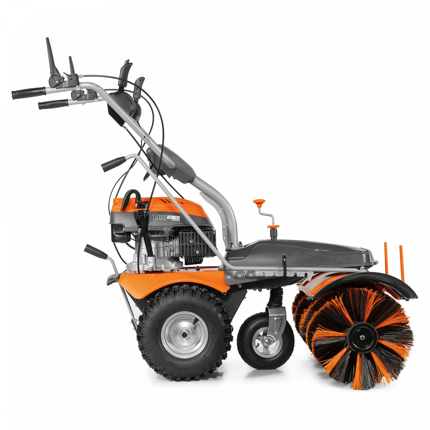 Угол поворота щетки может регулироваться в нескольких положениях, поэтому можно настроить машину под любой ландшафт.