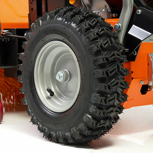 Возможность установки навесного оборудования и простота его смены - снегоотбрасыватель без труда демонтируется и заменяется на подметальную щетку.