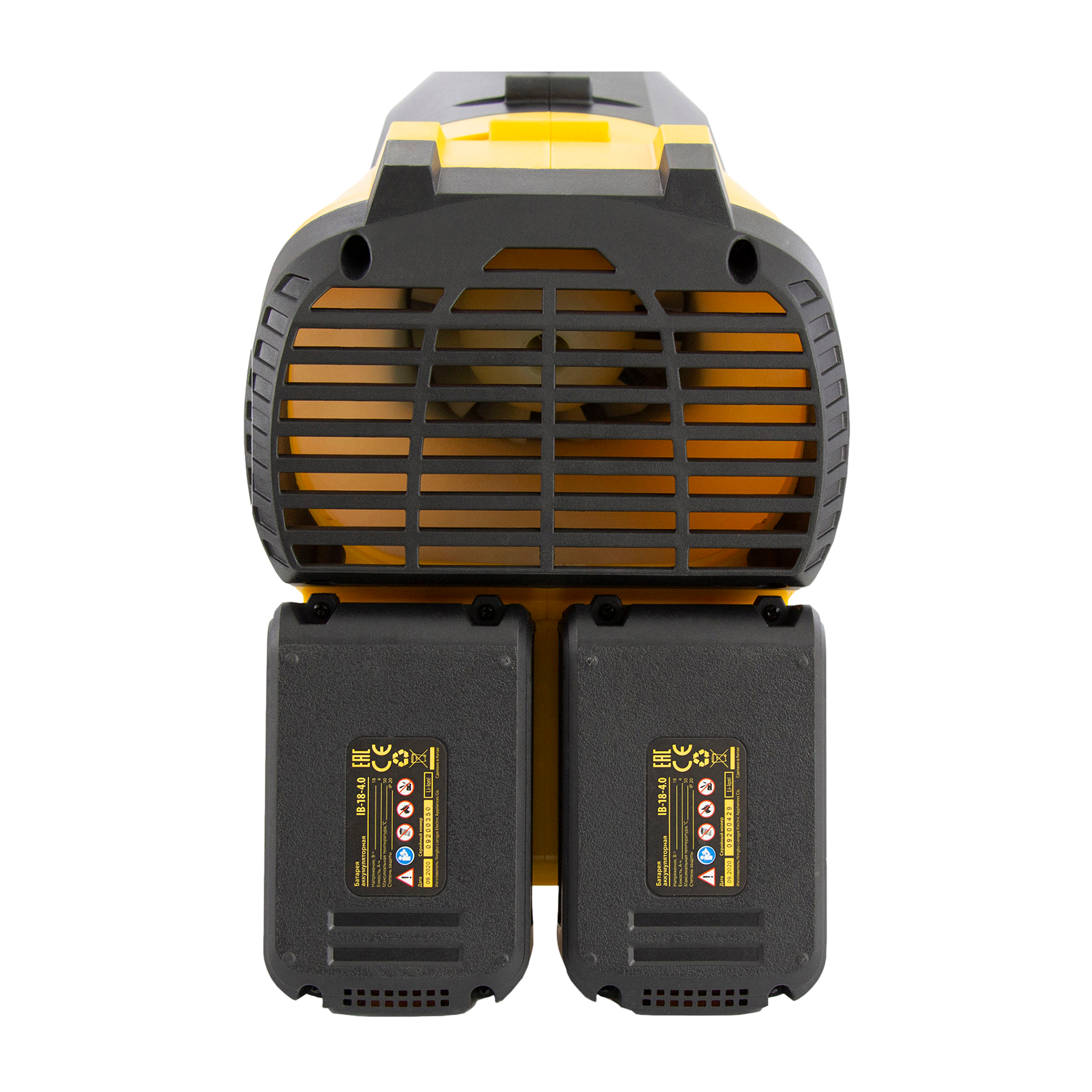 Воздуходувка имеет возможность работы от 2 батарей одновременно для увеличения продолжительности работы. В комплект поставки уже входят 2 аккумулятора 4 Ач