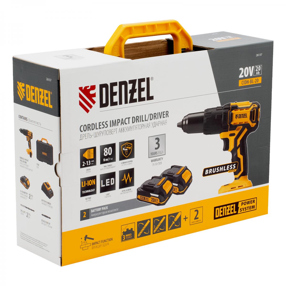 Дрель-шуруповерт аккумуляторная ударная бесщеточная Denzel CIDH-BL-20 в Красноярске