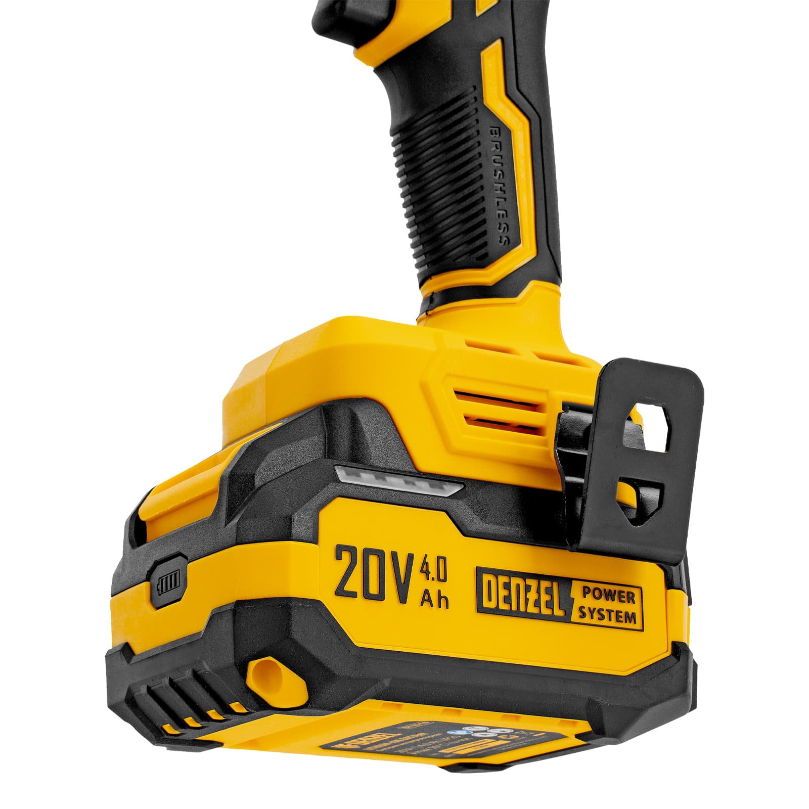 Универсальность — аккумулятор Li-Ion емкостью 4 А·ч совместим со всеми инструментами единой платформы Denzel Power System 20V.