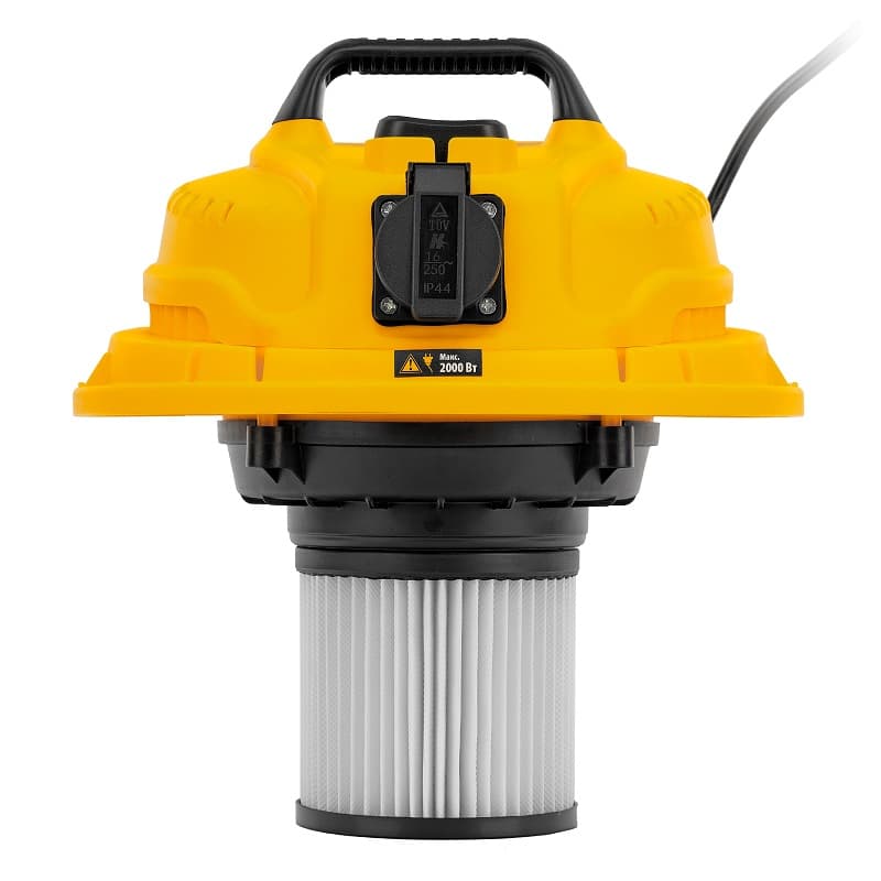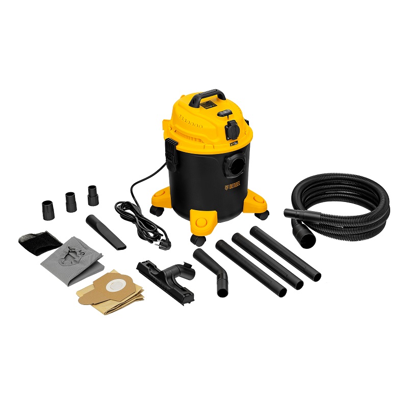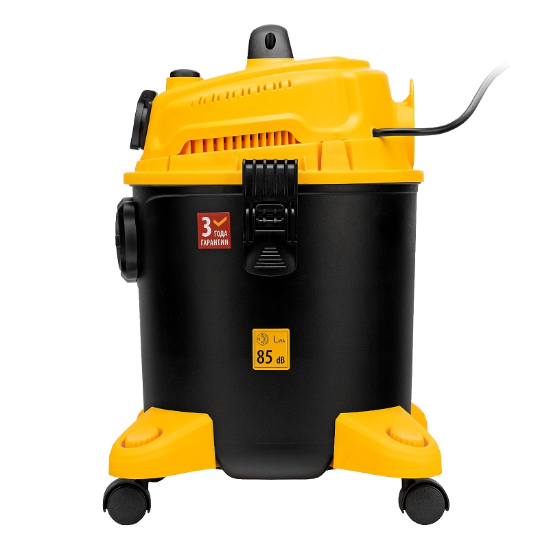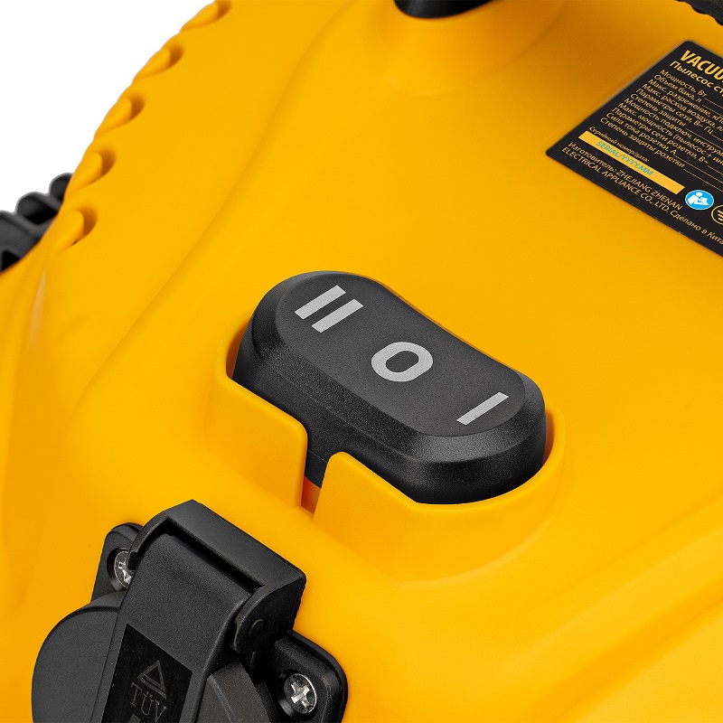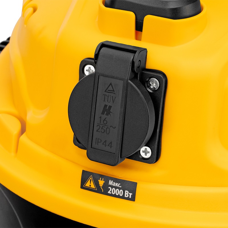 Оснащенный розеткой с автосинхронизацией, предназначен для сухой и влажной уборки помещений: удаления бетонной, кирпичной пыли и других твердых отходов, а также воды