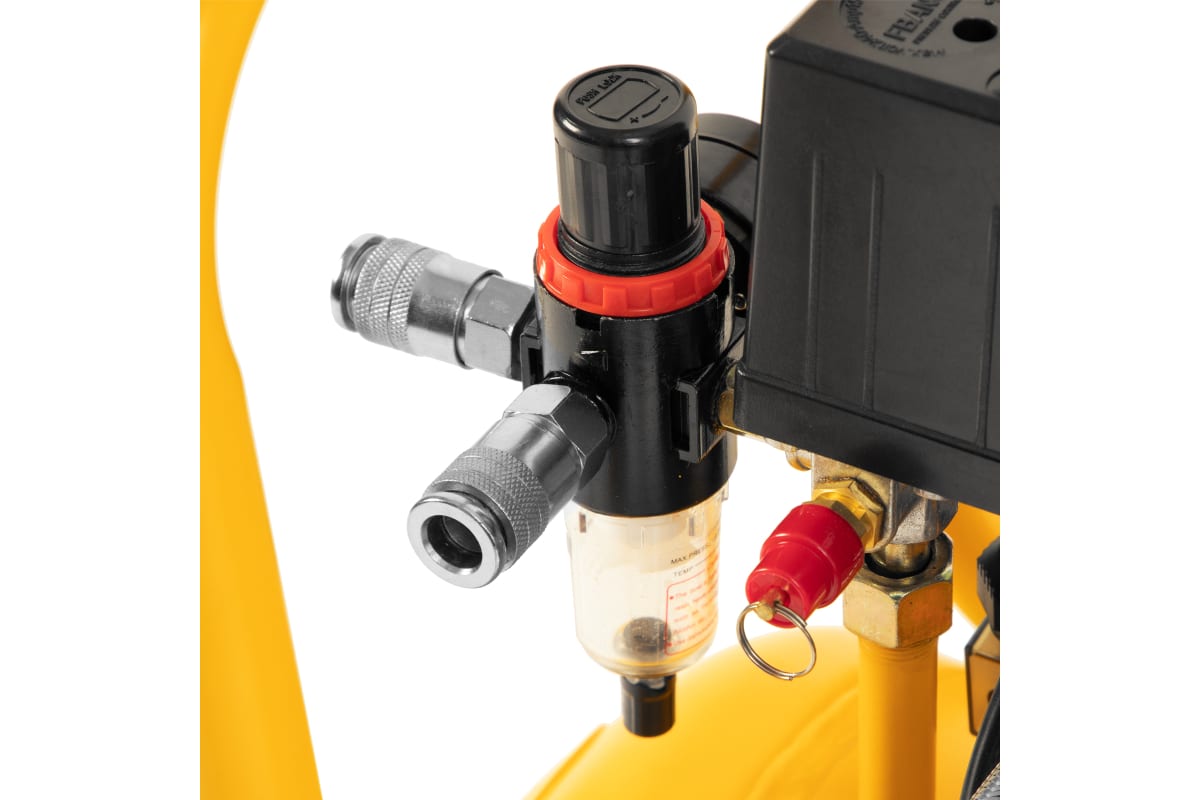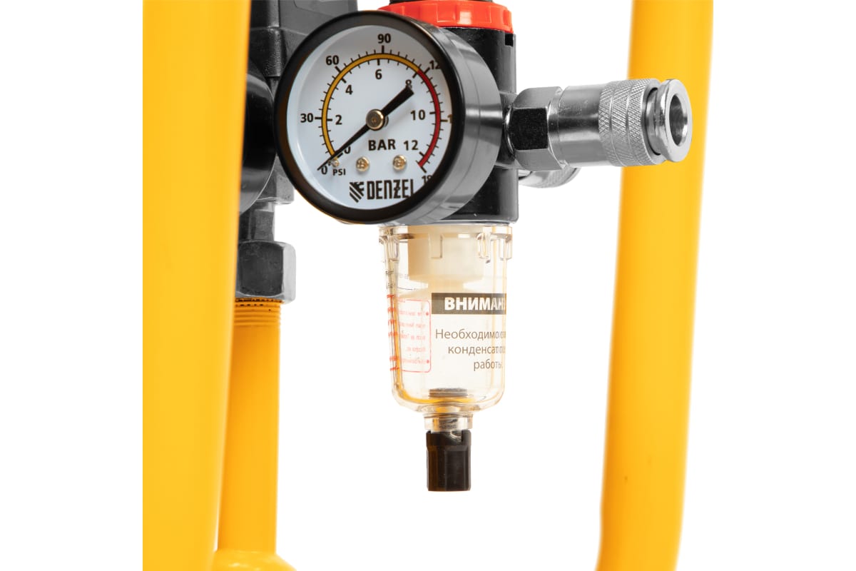 - Регулятор давления на выходе — можно выбрать оптимальный режим подачи воздуха в соответствии с характеристиками пневмоинструмента.